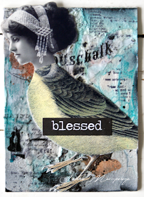 Na takto pripravený povrch som nalepila moje krásne Harpye. Vtáčie obrázky som doplnila hlavami zo starodávnych fotografií a samolepiace nápisy dotvorili profil dámy.