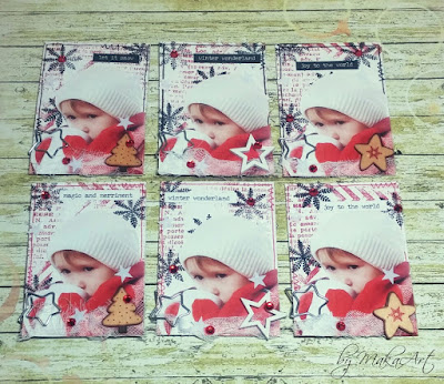 K mini vianočnému tvoreniu patria jednoznačne aj ATC kartičky. Podklad bol vytvorený obdobne ako u mixed media pohľadníc z príspevku Netradično-tradičné vianočné pozdravy...